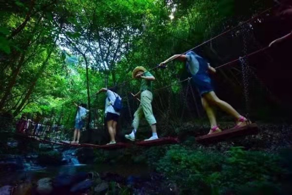 漂流全程4.8公里,整段峡谷落差近100米,全程大小落差不断。人在水中漂,如在画中游,既可享受澎湃刺激而又安全的漂流,又能在自然生态的环境中享受优质水质的无穷魅力;漂过一山又一山,赏尽一景又一景,令人流连忘返。漂流终点上岸后更换衣服。