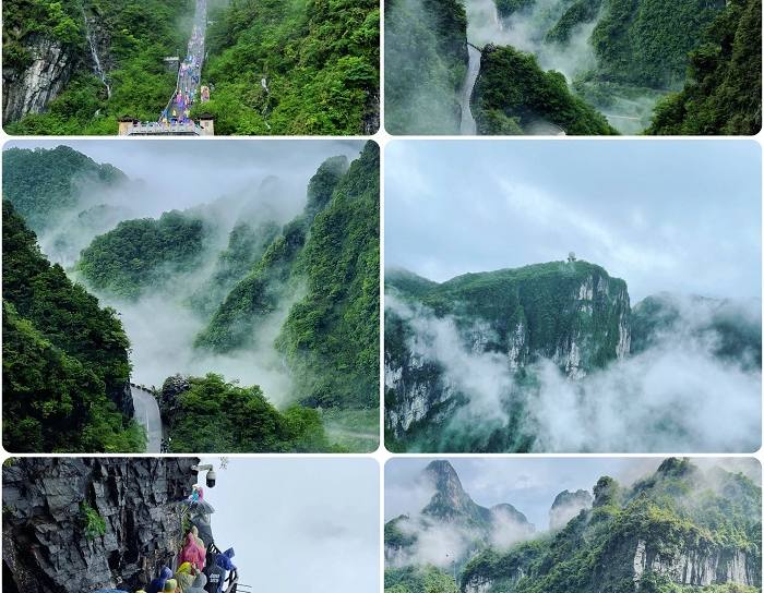 在“水绕四门”乘坐天梯只需要2分钟即可到达。乘坐电梯时可以透过玻璃欣赏张家界一大绝景——神兵聚会。