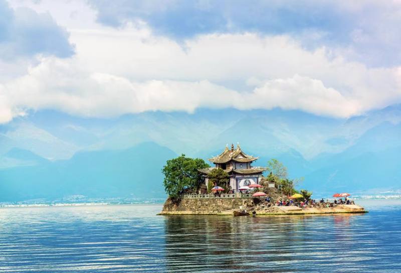 乘车前往小普陀大约行驶30分钟。小普陀岛虽然小,但名气很大,在介绍大理的画册中少不了有它。在小普陀上看苍山洱海,仿佛置身在白首老者托起的银盘之中,心胸格外开阔。(30分钟)