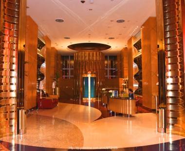 所有的202间房皆为两层楼的套房,最小面积的房间都有170平方米;而最大面积的皇家套房,更有780平方米之大。而且全部是落地玻璃窗,随时可以面对着一望无际的金华美景。进入房间会有一个管家等着跟你解释房内各项高科技设施如何使用,因为酒店豪华尊贵的服务宗旨就是务必让房客有阿拉伯国王的感觉,并且入住皇家套房,还能享受管家、厨师和服务员们七对一的服务。在狠狠地让人感到吃惊之余,也让人感叹金钱的力量。以最普通的豪华套房为例,还包括窗帘和电灯的开关,办公桌上有笔记本电脑,随时可以上网,墙上挂的画则全是真迹。建筑的边缘伸出的悬臂梁