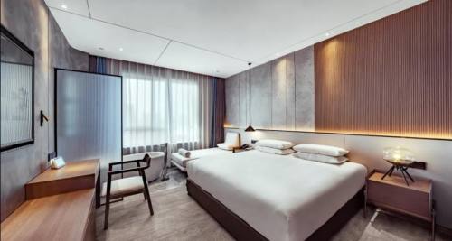 杭州万合酒店位于复兴路与南复路交叉口,背依钱塘江,比邻杭州陶瓷品市场、南宋官窑博物馆、八卦田、基金小镇,距西湖约10分钟车程,距宋城、灵隐寺等杭州核心景点约20分钟车程,距离地铁四号线水澄桥站约400米,与复兴大桥入口咫尺之遥,交通便利。酒店由国美建筑设计研究院知名设计师设计,荣获2020 DESIGN FOCUS国际空间设计大奖,淬炼钱塘江、杭城元素,简而未减,华而不宣。打造全场景无感体验,拥有智能客控系统,刷脸入住,语音/小程序完成设施控制及呼叫服务,让您感受简练建筑、科技优雅、谦恭礼遇之境。酒店拥有123间智能客房,房内设施齐全,配备顾家豪华床品、TOTO智能马桶、保险箱、迷你吧以及冰箱。无柱设计宴会厅是举办大型展会、公司会务、社交活动、梦幻婚礼的理想场所。先进的宴会设施包括专业的视听设备、3套超大高清液晶屏幕、高速互联网服务。万合酒店独具特色全日制餐厅、本味和万合轩中餐厅带您领略非凡美食之旅,亦可在大堂酒廊享受经典下午茶或午夜醇饮放松身心,观看钱江夜景;全方位开放式大露台-问茶,风光明媚的露台和静心的瑜伽诠释了什么叫做生活的艺术;您也可以在钱塘江边来一场说走就走的骑行和酣畅淋漓的跑步。旨在缔造匠心精神并提供细致温润的贴心服务,为您开启行旅雅致生活。