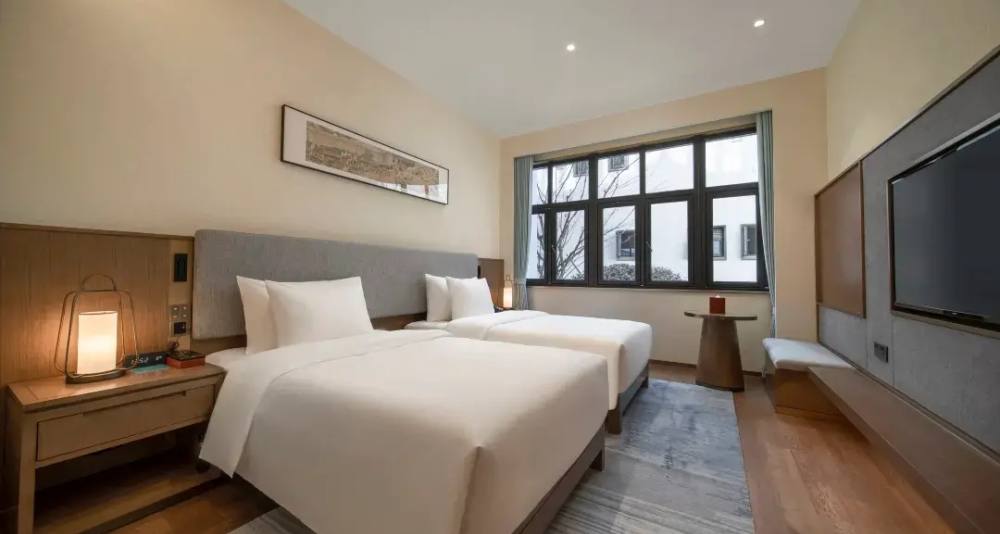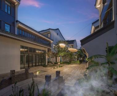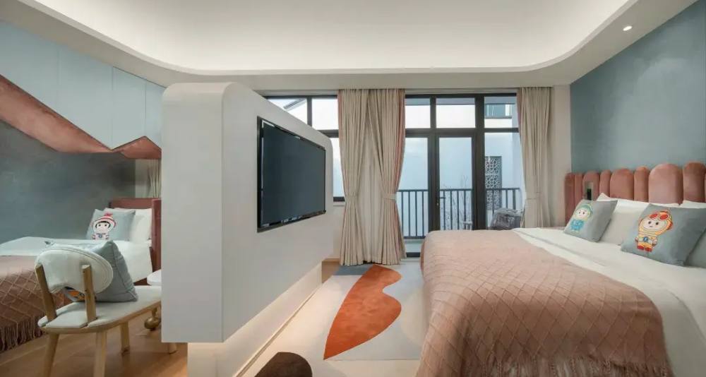 嘉兴芦席汇开元观堂酒店整体风格汲取旧时水乡民居意境,以现代极简手法删繁,追求谦逊克制的留 白之美。寥寥数笔,便将秀丽江南的美好意象融入到芦席汇的每一个晨昏昼夜。目之所及,皆是 值得收藏的美好生活图景。酒店共计客房135间,其中以运河、芦席、丝绸、书院为主题客房共计 112间,开元森泊系亲子客房23间,完美契合家庭出游的需求,温柔色感柔化空间肌理,舒适配 色安定心绪,柔和的曲线与趣味性的玩偶错落有致,玩趣十足。 酒店配有1200余平室内儿童主题乐园一个,园内弹性立体迷宫、超大海洋球池、蹦床空间、 互动投影等多样游乐设施,让每一位孩童都能轻松释放。酒店另拥有中小型会议室3个,可满足不同 标准会议需求。闹中取静,枕水而眠,芦席汇开元观堂带您找寻宁静、安然、风雅、美好的度假 生活。