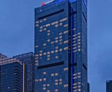 义乌万豪酒店位于福田路,坐拥城市繁华的中央商务区CBD,鸟瞰义乌较大的湿地公园;距离国内4A级旅游购物中心——国际商贸城仅咫尺之遥,距离新客运中心约5分钟车程,驱车前往义乌机场、火车站约20分钟,至横店影视城约40分钟左右车程。 酒店高耸38层,别具匠心的设计给您带来前所未有的体验,一切尽显万豪高端商务酒店卓尔不凡的尊贵品质。 酒店小憩大堂吧,周边CBD景观尽收眼底。都会尚膳崇尚自然,现代而颇含流行元素以及古世界地图的设计,宛如邀您开启环球美食之旅。在万豪中餐厅精致优雅的环境中演绎臻品粤菜,淮扬特色,本地美食。 酒店专业的宴会团队,个性化的客户关怀服务,为您打造难忘的独特活动记忆。宴会厅配备先进视听设备,是您大型宴会、会议等活动的理想之选。