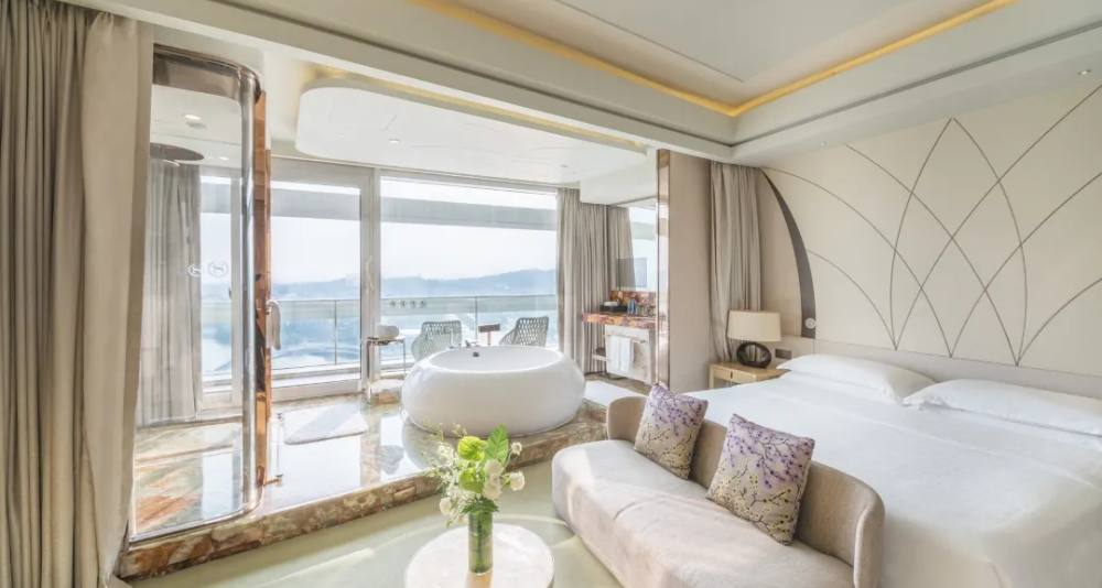 酒店的每个房型都有所不同,每个房间都带独立阳台,所有客房内家私也均为进口定制。