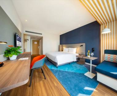 酒店设计风格时尚、智能,精致且富有活力的客房,超大空间,视野开阔,还可看到西湖的风景。其次配有一间空间灵活多变的会议室,提供24小时自助免费洗衣阁,高速无线网络、所有房间均含智选安心早餐、优质轻奢的羽绒床品以及舒适的沐浴设施。新一代智选的卫浴干湿分离,双床床头隔板设计,为双人入住客人提供更多私密空间提升入住体验。在这里,无论是商务出行还是休闲度假旅客都能尽情放松和享受杭州西湖东智选假日品牌所提供的安全、舒适、温馨和便捷的住宿体验 。从入住到启程,智选假日酒店是您商务出行和游历杭州的明智之选!