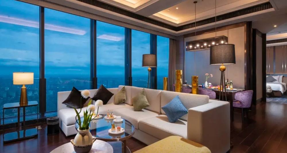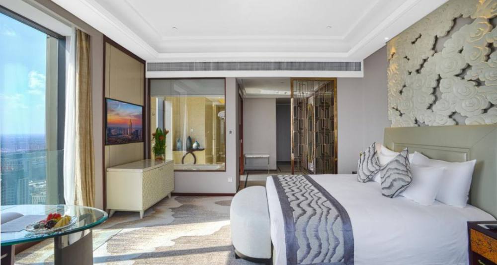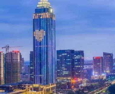 酒店高约245米,共50层,整体规划布局合理、各项功能完善、外观造型时尚、设计理念新颖。酒店主体建筑造型设计强调与城市景观环境相映衬,并结合竖线条与光影变化,凸显出酒店外形绚丽挺拔,已成为海宁颇具地标性的建筑。