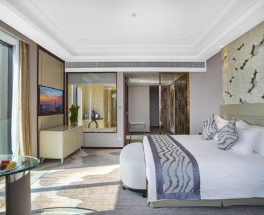 本工程由高层主楼及裙房组成。主楼50层,功能以商业办公、酒店客房为主,裙房4层,功能以沿街商业、会议、餐饮、娱乐等公共服务设施为主。该酒店地上总建筑面积100996平方米,建筑高度218米;建成后将成为海宁市最高端的一座星级酒店,对提升海宁市接待服务水平,提升城市形象具有重要意义,同时该项目的建成也必将成为海宁市的一座新地标。