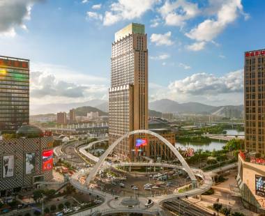 公寓坐落于瓯海区高铁新城,高达160米共有42层,建筑采用新古典主义风格,时尚与现代结合,华贵典雅,是瓯海区地标性酒店。公寓毗邻动车南站,周边有大象城、港龙商贸城、站南商厦、浙南物流基地等商业配套,公寓距离银泰城约1.5公里,距离瓯海区政府约3.5公里,与亚运村约10分钟车程,距离温丽高速路口约8分钟车程,距离s1线站点约8分钟,交通便利。