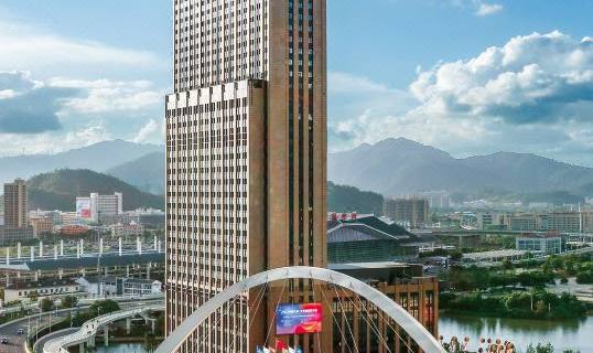 温州君廷酒店公寓是由温州侨意房地产有限公司投资的国际品牌酒店,公寓坐落于瓯海区高铁新城,高达160米共有42层,建筑采用新古典主义风格,时尚与现代结合,华贵典雅,是瓯海区地标性酒店。公寓毗邻动车南站,周边有大象城、港龙商贸城、站南商厦、浙南物流基地等商业配套,公寓距离银泰城约1.5公里,距离瓯海区政府约3.5公里,与亚运村约10分钟车程,距离温丽高速路口约8分钟车程,距离s1线站点约8分钟,交通便利。