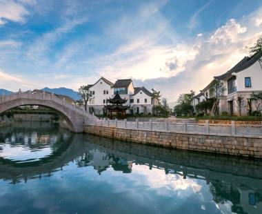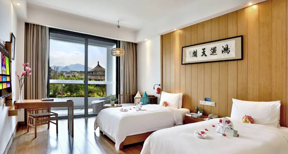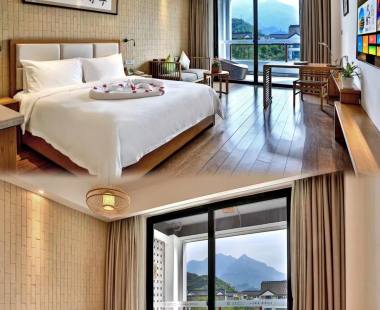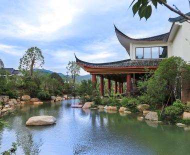 酒店以明清古建筑、合院式建筑为设计灵感,传承古建筑经典元素,并融合现代旅居要求的建筑及装饰风格。有合院式客栈、多层客栈、独栋别墅等共计千余间客房;有画舫餐厅、山外山餐厅、多功能厅、会议中心等组成的可容纳超过千人的各类餐饮设施;还有室内恒温游泳馆、书吧、影院,垂钓等休闲娱乐设施。