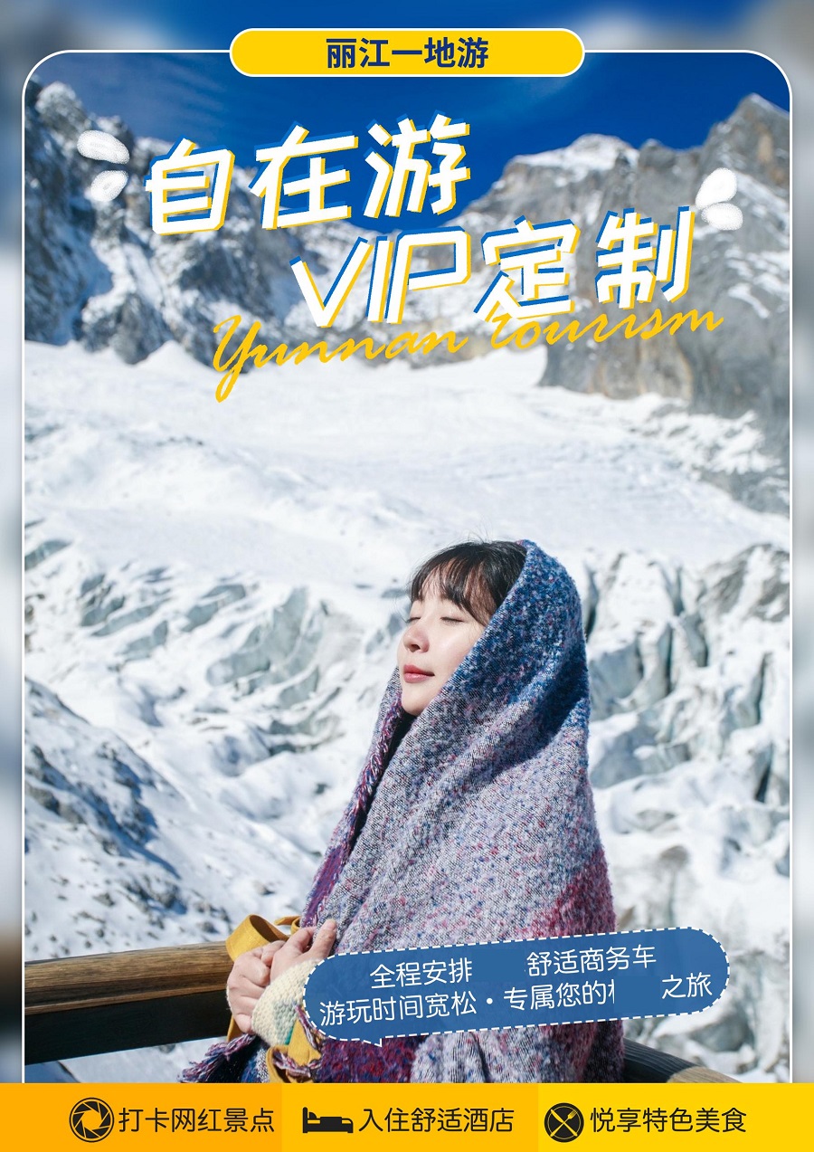 | 门票及地面项目 | 行程中所列景点/场馆首道大门票玉龙雪山→蓝月谷→丽江古城——冰川公园大索道 | 行程中所列景点/场馆首道大门票玉龙雪山→蓝月谷→丽江古城——冰川公园大索道 |