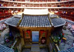 整个景区壮观的应该是5层楼高的和贵楼,它是较大的方形土楼,令人诧异的是它是建在沼泽地之上的。中庭有一块下陷的鹅卵石地面,长期潮湿,人站在上面踩一踩就能感觉到地面的上下摇动。需要注意的是,如果你想要上楼,需要另外支付5元,并且这里的商业气息很浓重,各种小摊挤的满满当当。