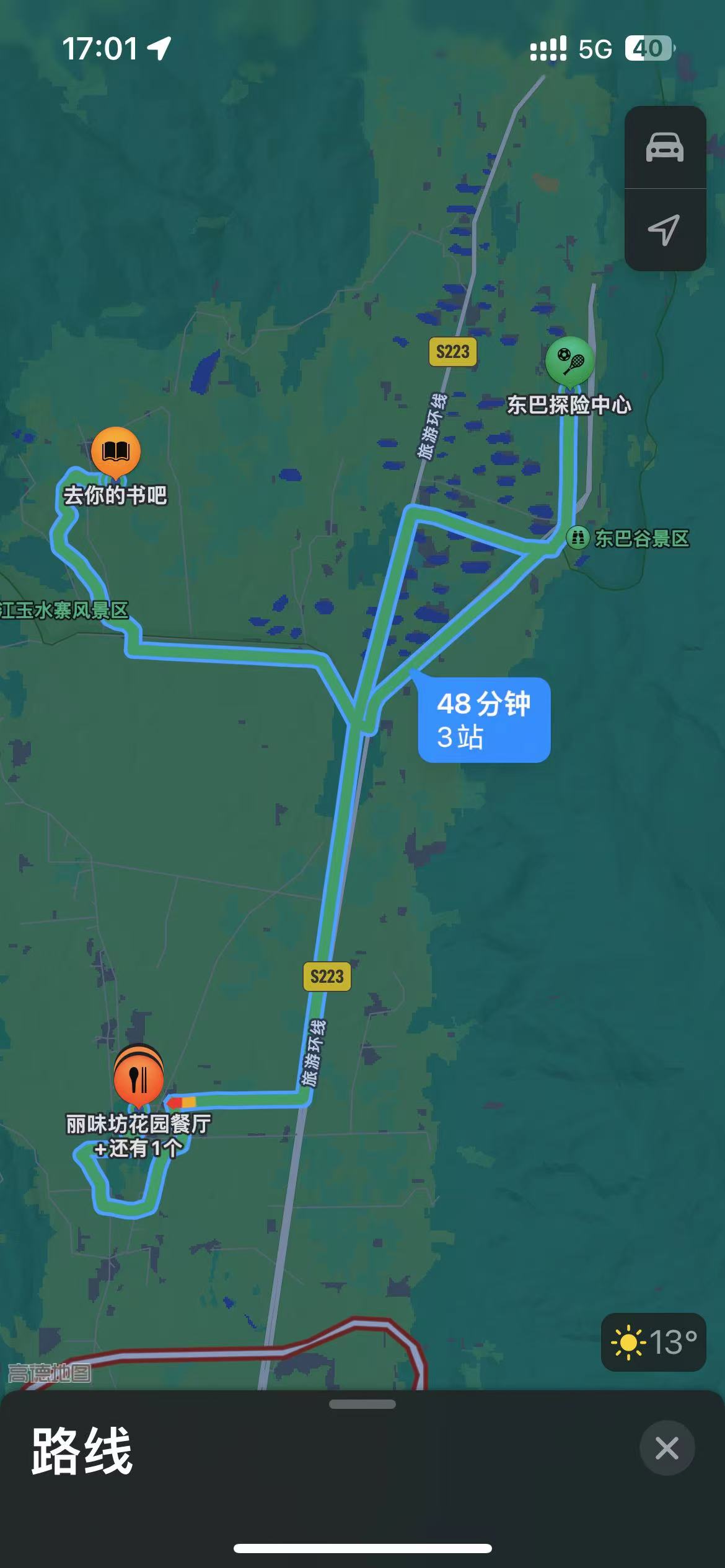 去你的书吧→烟火餐厅→东坝探险中心→ 丽味坊花园小厨→白沙草堂