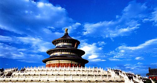 于指定时间前往成都双流机场集合,领取印有“玩转北京”标志的精美礼品一份,乘机前往首都北京,接机后游览参观中国现存最大的古代祭祀建筑群、明清两代祭天的场所―【天坛公园】(含首道门票,参观约1.5小时,客人如需参观3个园中园,套票20元/人,不作为加点推荐)。后前往宾馆,入住酒店。