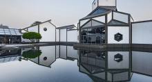 新馆大门是入口,忠王府大门是出口。进馆后可以好好欣赏一下这座新馆建筑,它由建筑大师贝聿铭设计,有着传统的苏州园林风格,高低错落,深灰色屋面与白墙相配,清新雅致。屋顶上金字塔形的玻璃天窗让博物馆内充满自然光线,在大门、天窗廊道、凉厅及各展厅都可以看到这个特点。馆中还有庭院、水池、石桥,既传统又现代。漫步在新馆庭院中,蓝天、白墙、绿竹、清水,十分惬意;走在石桥上还能看到白墙下用砂石堆砌而成的画,很有特点,不妨拍照留念。