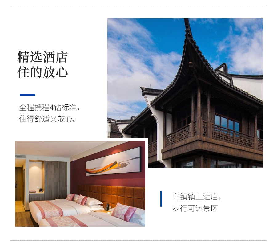 ★ 【精选酒店】1晚夜宿乌镇,全程4钻&4.5分以上住宿标准!住宿从来不含糊,精选是我们的底线,高标是我们的追求。乌镇我们只住高钻,钻级严格评定、评分高,口碑好才是自营选择的标准! ★ 【缤纷景点】5A乌镇+5A拙政园+5A西塘+5A西湖!景点从来不含糊,哪里有5A景区,我们团队就会开向哪里。让您一次玩转华东的5A,这才是服务标准! ★ 【服务保障】专业讲解,细说江南故事!您出行无忧!一切交给我们,我们有专业的导游队伍为您提供服务保障,专业的计调队伍为您服务。