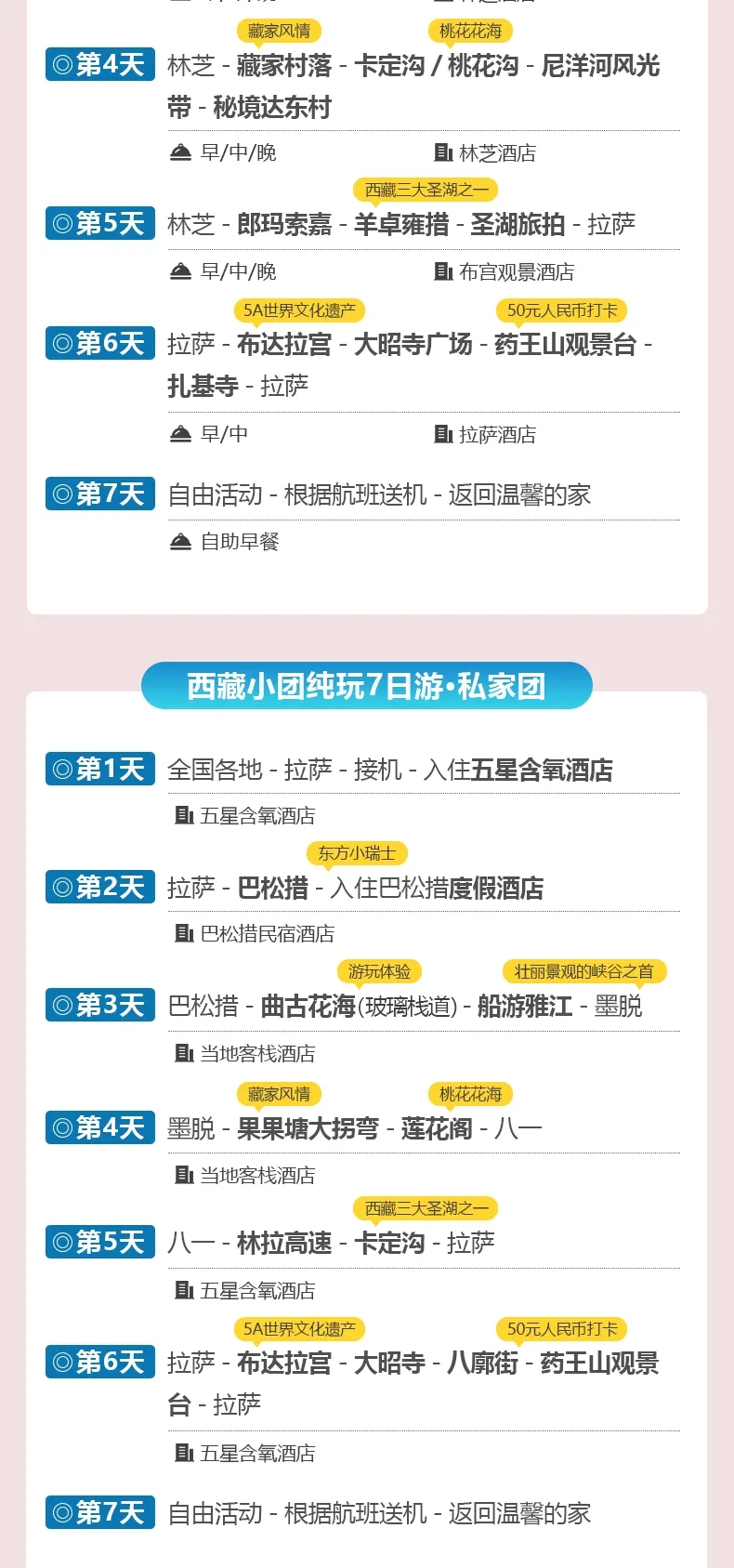 ★ 【超值赠送】赠送巴松措帆船游+曲古花海骑马射箭+圣湖旅拍+篝火烤羊宴+鲁朗石锅鸡+管家式服务,全程无忧! ★ 【精选酒店】首晚五星含氧酒店+秘境达东温泉酒店+布达拉宫观景酒店+巴松措主题酒店,让您全程住的舒心! ★ 【缤纷景点】米拉山隧道+船游巴松措(轻徒步-湖心岛-措宗工巴寺-帆船游)+雅尼湿地+雅鲁藏布大峡谷+曲古花海(骑马射箭)+鲁朗林海+卡定沟/桃花沟-尼洋河风光带+布达拉宫+大昭寺广场+八角街+扎基寺+药王山观景台,精华景点,一览无余!