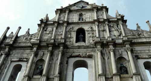 大三巴牌坊为巴洛克风格,以花岗岩建成,上下共分五层,其雕刻和镶嵌较为精细,融合了中外建筑艺术的精华,是一个中西文化交融的艺术品。如今人们常常在此打卡拍照。