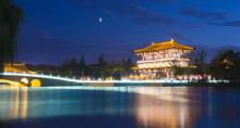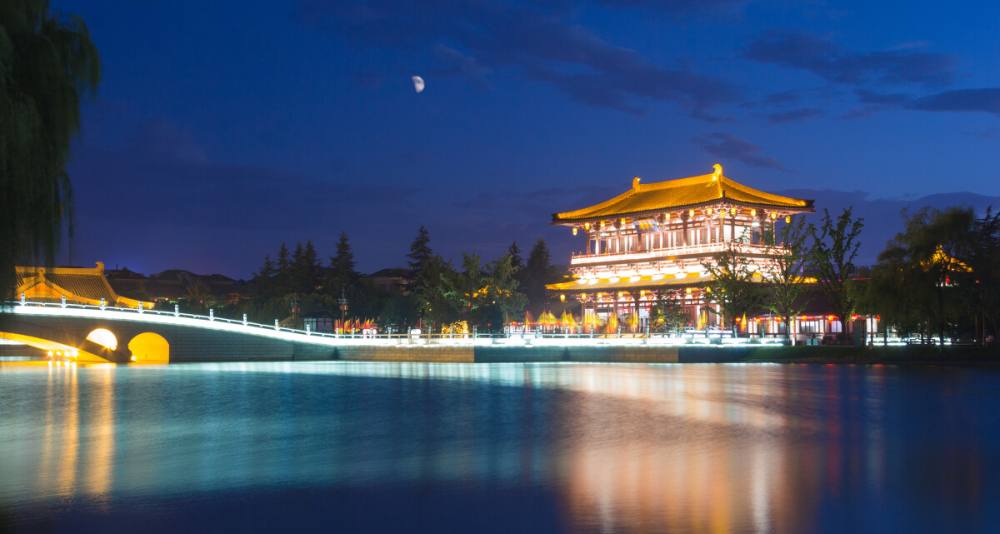 下午四点,参观大唐芙蓉园,恢宏建筑,歌舞表演,游玩时间:一个小时。