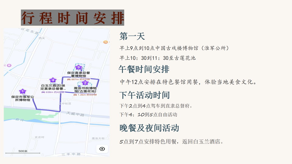 古戏楼博物馆,古莲花池,直隶总督府,大慈阁,留法纪念馆,保定水利博物馆,西大街。