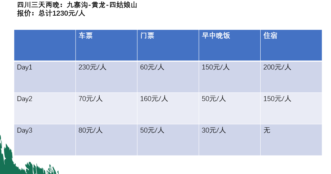 - 14:00-15:00:川主寺→黄龙景区(车程1h,可短暂体验藏羌风情)